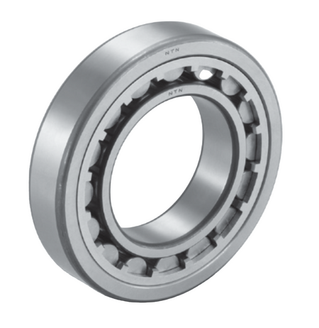 The inner ring of an N design bearing has two integral flanges while the outer ring has no flanges. Axial displacement of the shaft with respect to the housing can be accommodated in both directions.